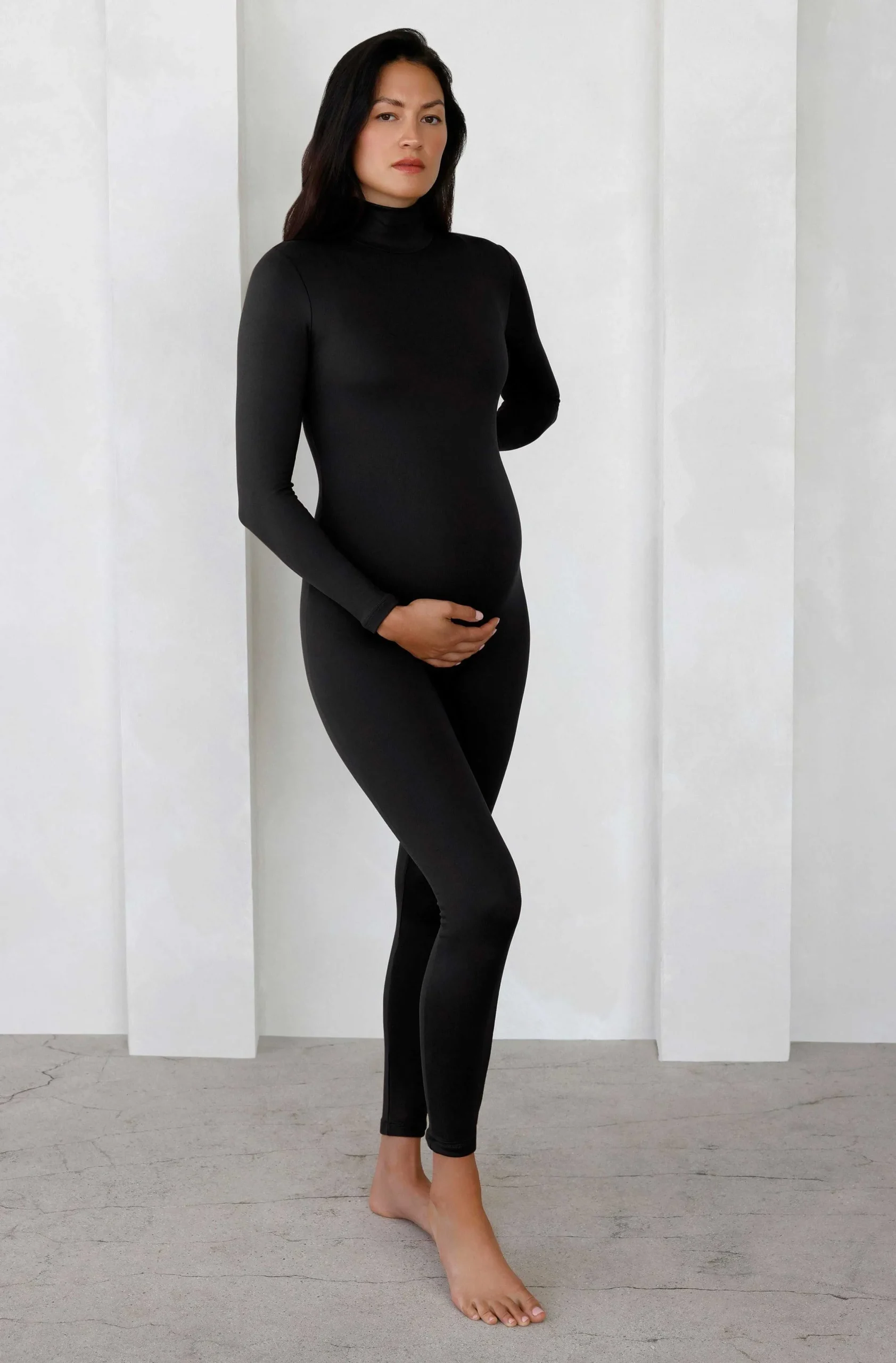 This Lite Weight Turtle Neck Onsie Is The Perfect Full Maternity Bodysuit. Featuring Long-Sleeves And A Turtleneck. A Must-Have For Every Expecting Mother!